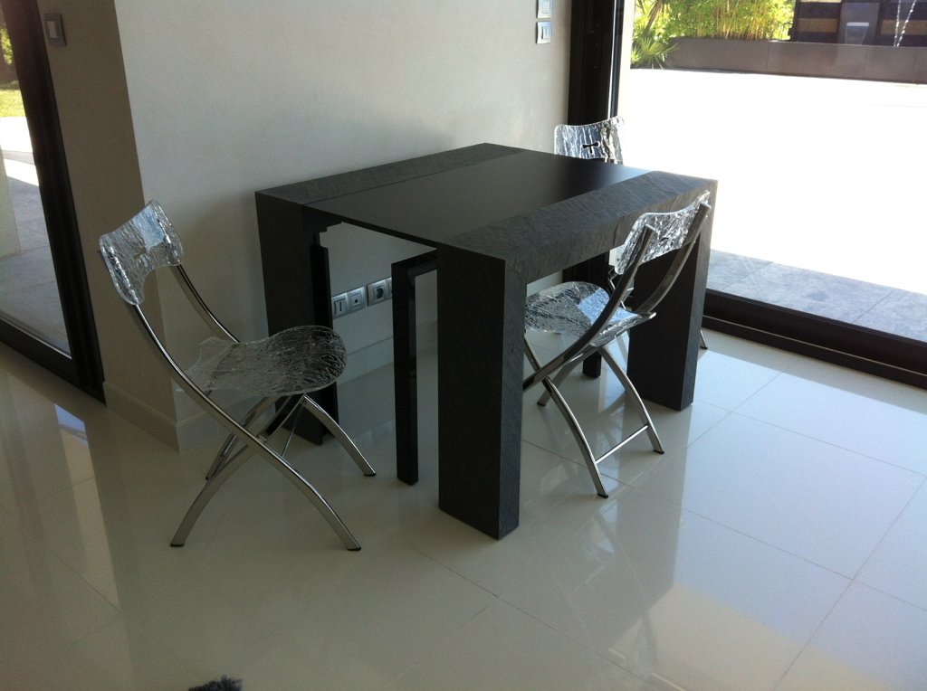 Rénovation ultra-chic pour cette villa, jouant sur un contraste théâtral et intemporel entre le noir profond et le blanc pur. L’espace est structuré par des verrières architecturales qui délimitent les zones sans bloquer la lumière. Le mobilier moderne sélectionné, notamment des tables sculpturales, apporte une touche de luxe absolu.